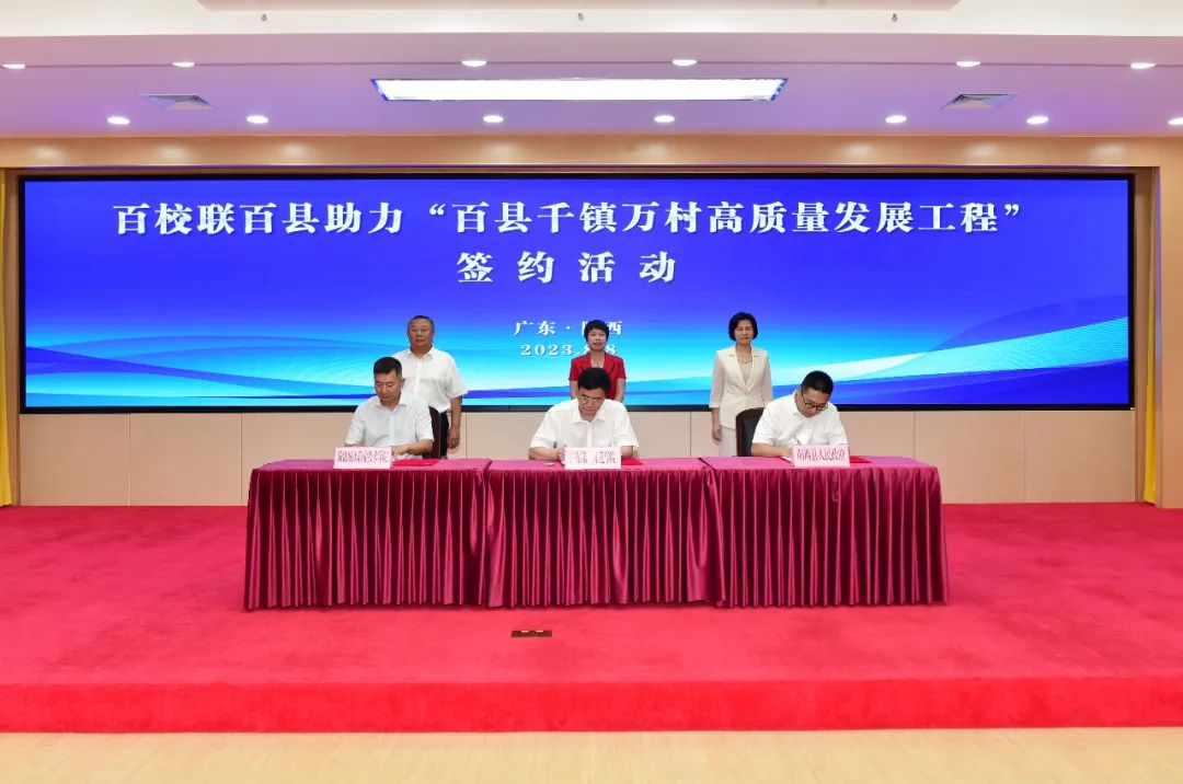 (党政办公室 报道)8月8日,我校与广东第二师范学院、阳西县人民政府在阳西县政府举办百校联百县助力“百县千镇万村高质量发展工程”签约活动,三方携手结对共建,把县域所需和高校所能结合,推动城乡区域协调发展。校长陈斗雪、广东第二师范学院党委书记马卫华、阳西县县委书记张秀洁见证了签约仪式。阳西县政府相关领导、校党政办公室主任崔国汉参加活动。