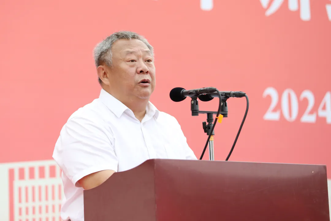 陈斗雪校长作大会讲话。他代表学校向承担本次军训任务的全体教官及参训教师、后勤保障等部门的全情投入表示感谢。他表示,2024级新生以实际行动交出了一份优秀的答卷,彰显了军训育人的成效。希望同学们在接下来的大学生活中站得直、行得正,迎接未来的挑战;厚积薄发,蓄力前行;不惧挑战、勇攀高峰;志存高远,全面发展,勇做新时代的追梦人!