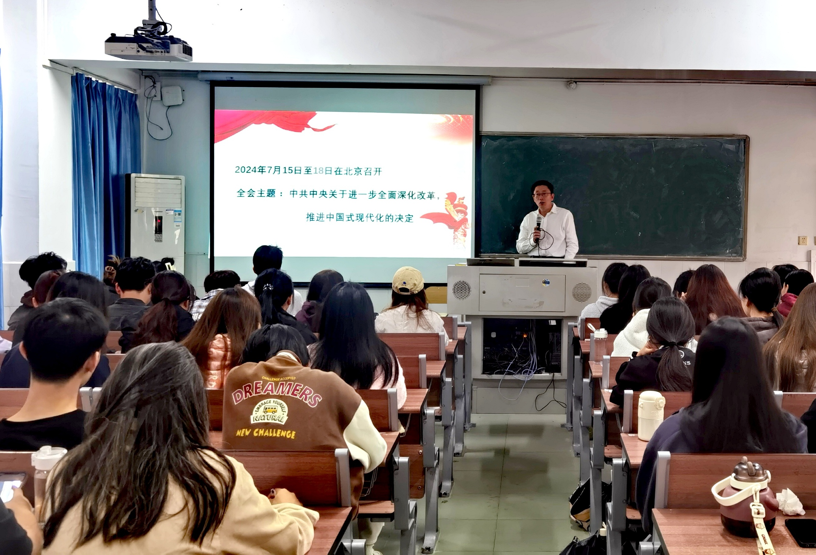 刘向阳副校长以“统筹推进教育科技人才一体化改革,构建支持全面创新体制机制”为主题,向学生宣讲党的二十届三中全会精神。他首先向学生介绍了党的二十届三中全会精神,随后深入分析了构建支持全面创新体制机制的重要意义、内在要求、重点任务等,并结合学校实际,提出高职院校新一轮双高校建设的发展目标。