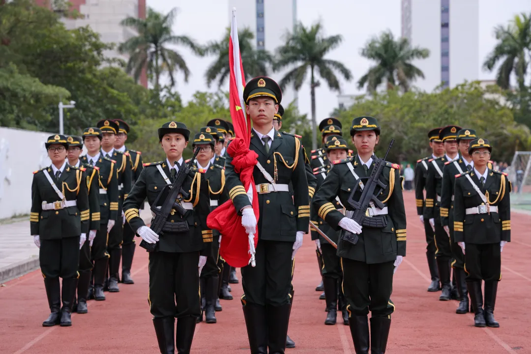 早上七时三十分整,升旗仪式正式开始。国旗班护卫队身姿挺拔,步伐整齐,缓缓行进至升旗台前,伴随着庄严的国歌响起,鲜艳的五星红旗在晨光中冉冉升起,全体师生齐唱国歌。