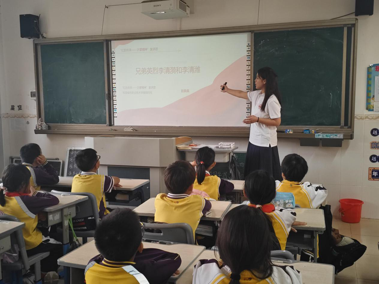 宣讲员赵佩佩用通俗易懂的语言、鲜活生动的细节,为小学生们讲述了李清潍和李清漪两位英烈的英勇事迹。宣讲员李雪仪则以饱满的热情、生动的语言,向小学生们讲述了革命英雄郭云舫的英勇事迹。宣讲员们通过精彩的讲述,重现了那段波澜壮阔的历史,一个个感人至深的细节,让孩子们深刻感受到了革命先辈们的坚定信仰和无私奉献精神。