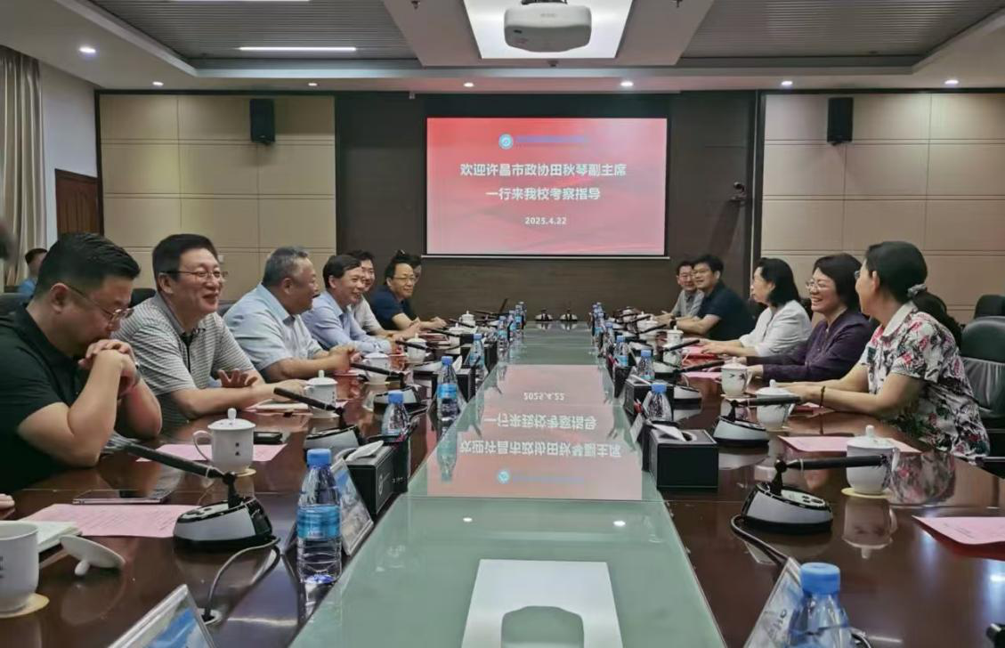 (党政办公室 报道)4月22日上午,许昌市政协副主席田秋琴一行7人来我校调研,珠海市政协科教文卫体委主任吕茹、副主任吴锡钦陪同。学校校长陈斗雪、党委副书记唐顺铁、副校长刘向阳接待了来访单位。双方在行政楼212会议室进行座谈交流。