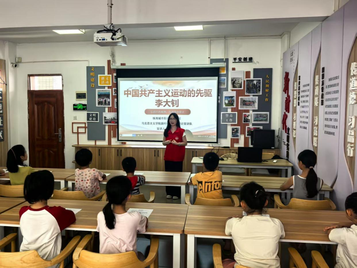 (马克思主义学院 报道)5月 18日下午,马克思主义学院知行社在珠海市金湾区平沙镇大虎社区新时代文明实践站,成功举办“红韵之声,薪火相传”红色故事宣讲系列活动。本次活动以“中国共产主义运动的先驱 —— 李大钊”为主题,通过重温李大钊同志追求真理、献身革命的光辉一生,引导参与者感悟信仰的力量,激发爱国情怀与奋斗热情,为实现中华民族伟大复兴凝聚磅礴力量。