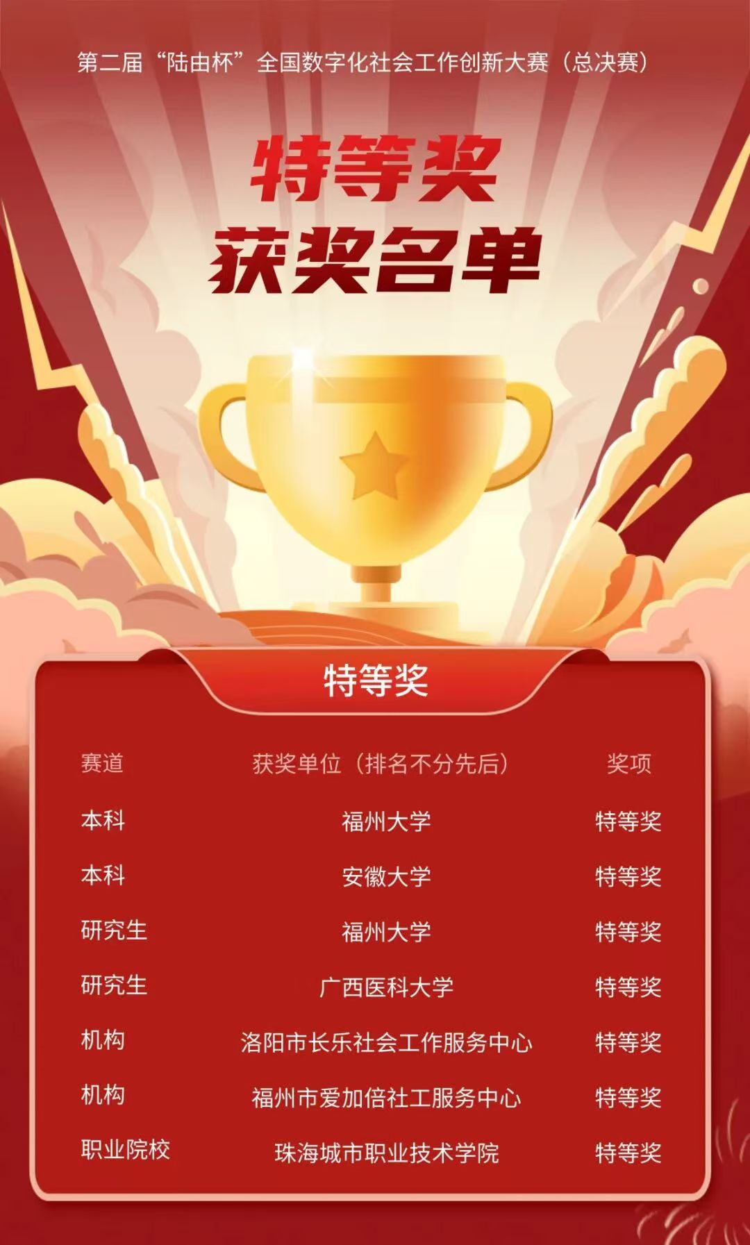 (人文学院 报道)10月19日,第二届“陆由杯”全国数字化社会工作创新大赛总决赛在上海应用技术大学圆满落幕,由我校人文学院社会工作专业周莹、梁惠荧、杨汶霏、刘洋四位同学组成的参赛团队(指导老师:杨恒、袁荣珊),历经初赛至决赛的多轮激烈竞争,斩获职业院校赛道特等奖,以实力充分彰显了社会工作专业的育人成效与学子的过硬综合素养。