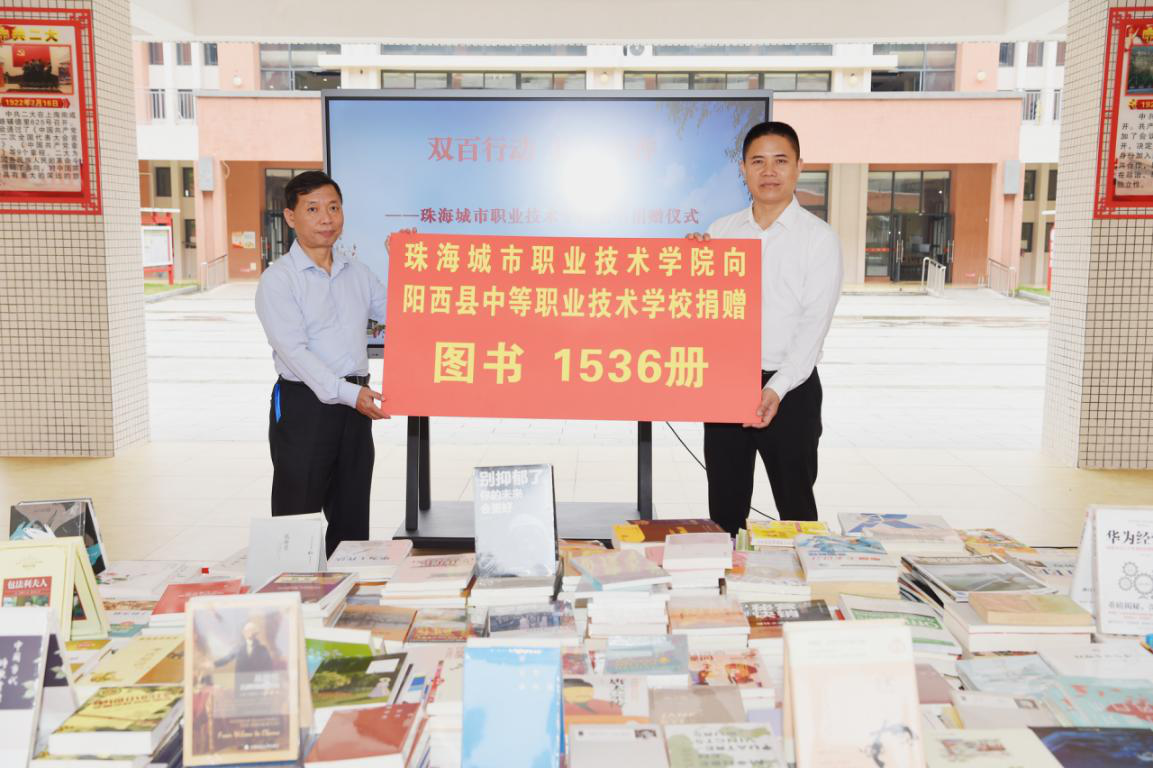 揭牌仪式后,我校向阳西县中职校捐赠了一批图书,并在阳西县中职校图书馆完成了捐赠仪式。