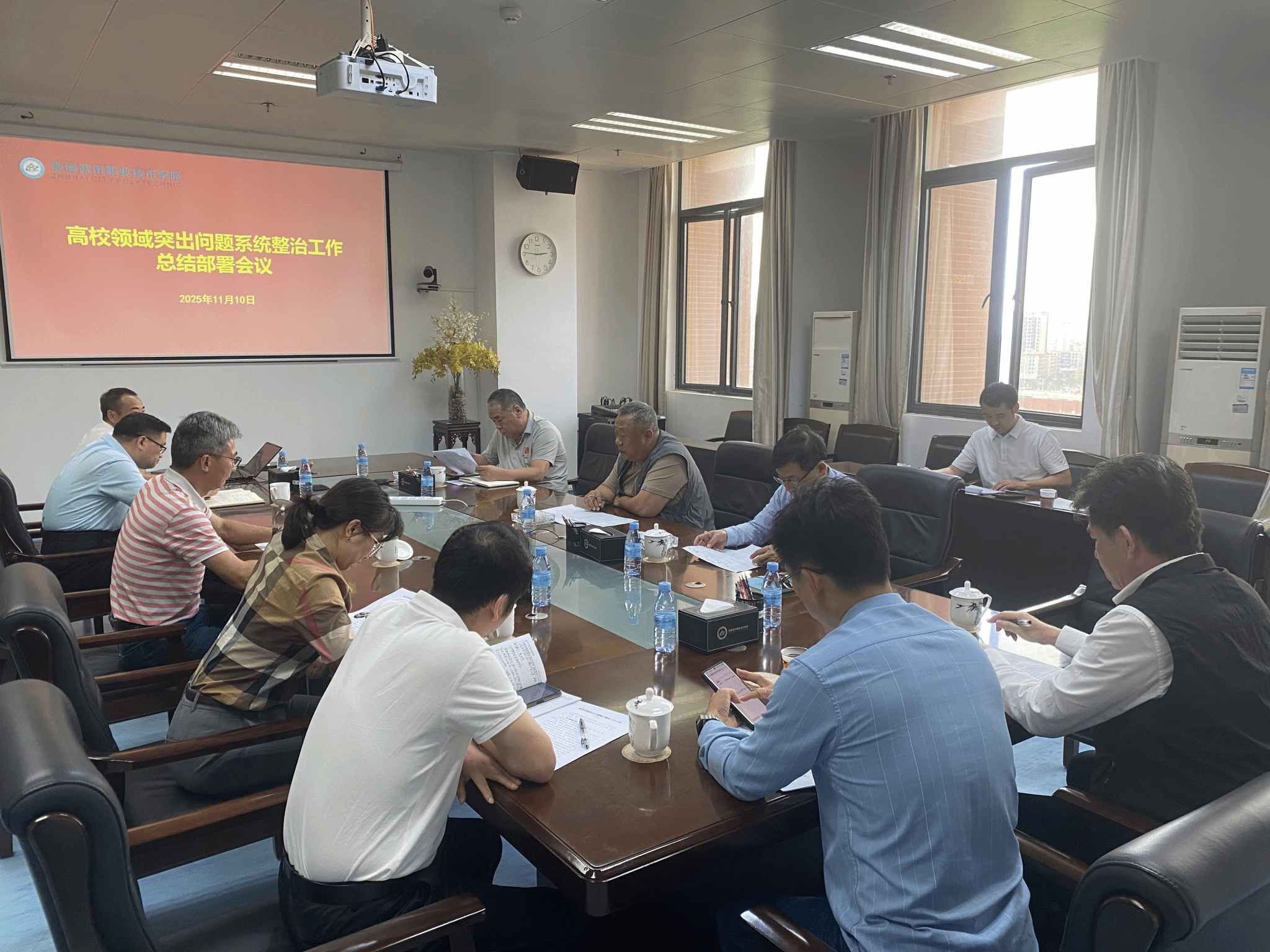 (党政办公室 报道)11月10日下午,学校召开高校领域突出问题系统整治总结部署会,阶段性总结系统整治工作成效,部署评估总结阶段任务,纵深推进整治工作走深走实。党委副书记、校长陈斗雪,党委副书记唐顺铁,党委副书记、纪委书记曾建平出席会议。