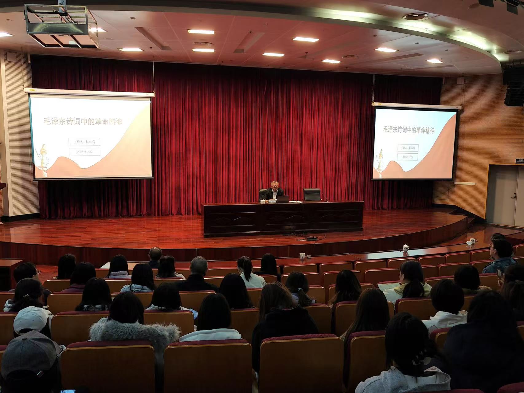 本次培训班邀请了陈斗雪校长为初级党课全体学员讲授《毛泽东诗词中的革命精神》专题党课,陈斗雪校长指出,毛泽东诗词是“史诗合一”的生动载体,学习毛泽东诗词有助于同学们更直观地理解中国共产党领导人民救亡图存、改天换地的光辉历程,深刻感悟中国共产党改造中国与世界的初心与使命。