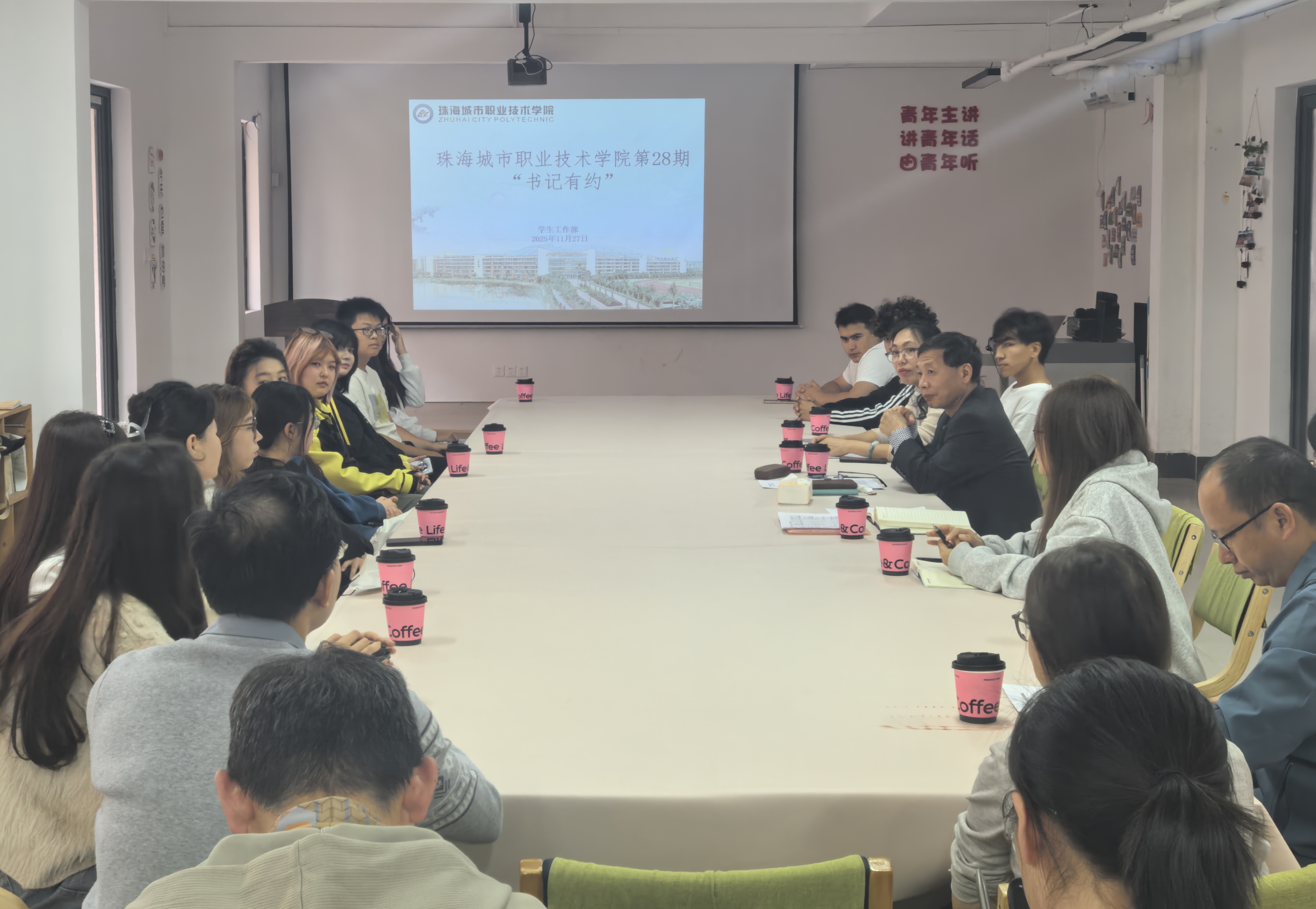 (学生工作部 报道)为深入贯彻落实党的民族政策,关心支持少数民族学生成长成才,11月27日下午,我校在青年之家举办“书记有约”——少数民族学生座谈会。学校党委副书记唐顺铁与来自各学院的18名少数民族学生代表亲切交流。党委学生工作部部长周雁嫦、各二级学院辅导员代表参加座谈。