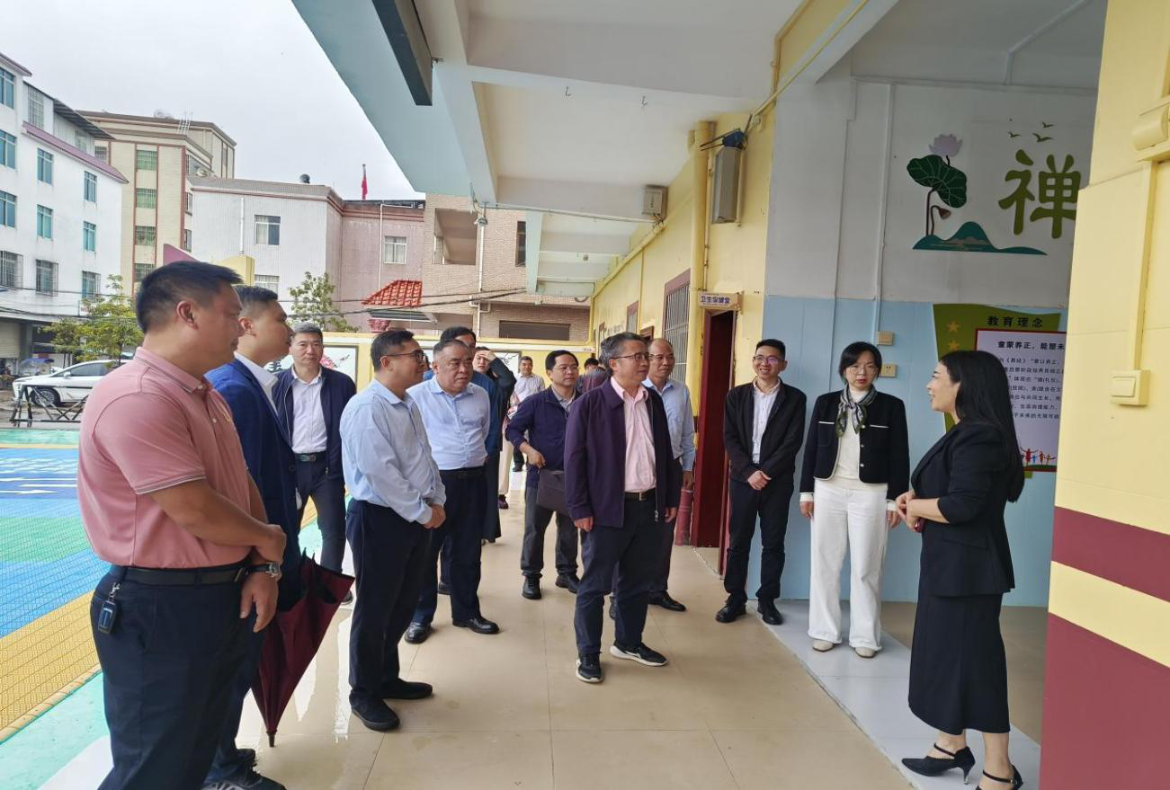 调研组首站来到丽岗镇中心幼儿园,共同参加“帮扶共建示范园”揭牌仪式。“帮扶共建示范园”项目是珠海市教育局结合丽岗镇学前教育发展实际推出的重点帮扶举措,将从师资培训、教学设施改善、课程体系建设等方面为幼儿园提供全方位支持,助力当地学前教育质量提档升级。