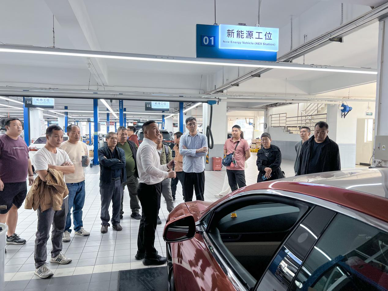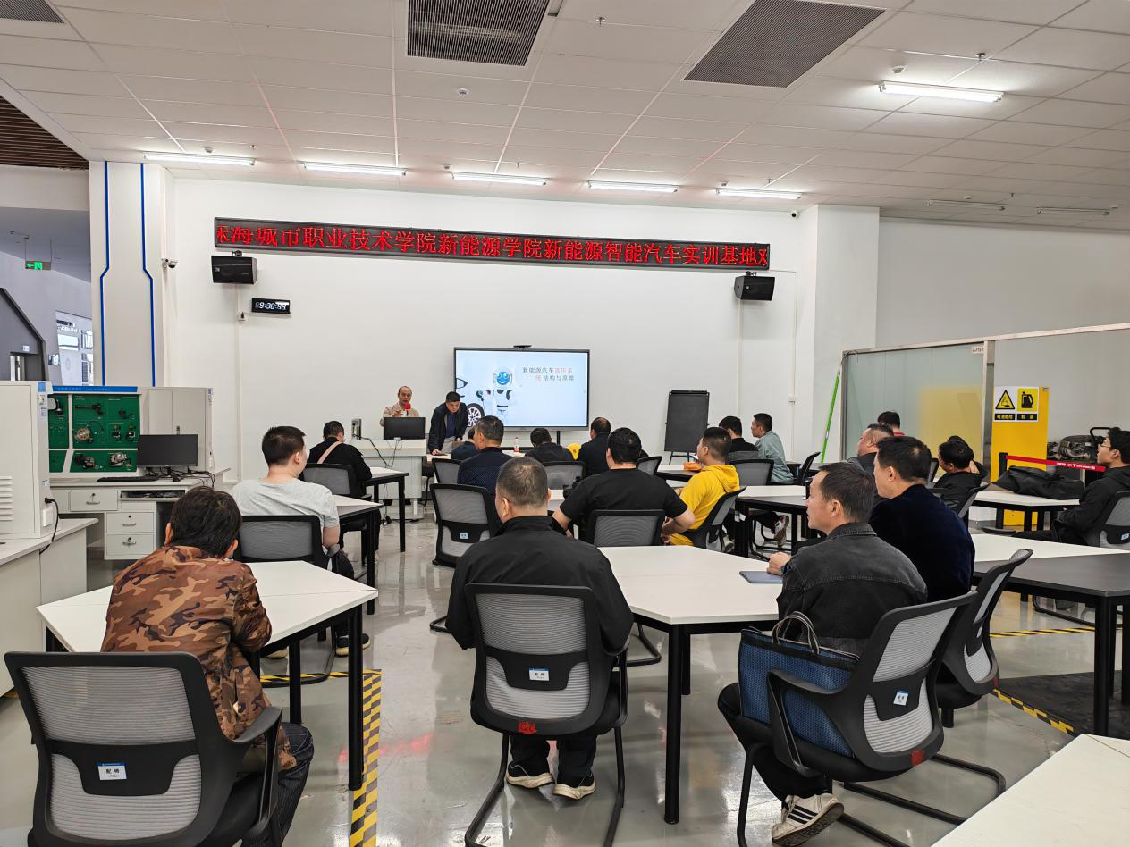培训以“新能源汽修精技,开拓职场新途径”为主题,直指新能源汽车产业人才需求与就业难点。课程涵盖车辆结构认知、三电系统原理、维护保养实操、故障检测诊断及行业前沿技术五大模块,采取“理论+实操+企业研学”立体化教学模式。我校新能源学院组建专业师资团队,确保零起点学员也能掌握核心技能。为强化岗位认知,培训班专程组织学员赴我校校外实践基地“珠海市珠光汽车有限公司”新能源汽车维修车间参观学习,通过真实工作场景体验,帮助学员深化对新能源汽车维修保养岗位的理解,搭建起从课堂到职场的认知桥梁。