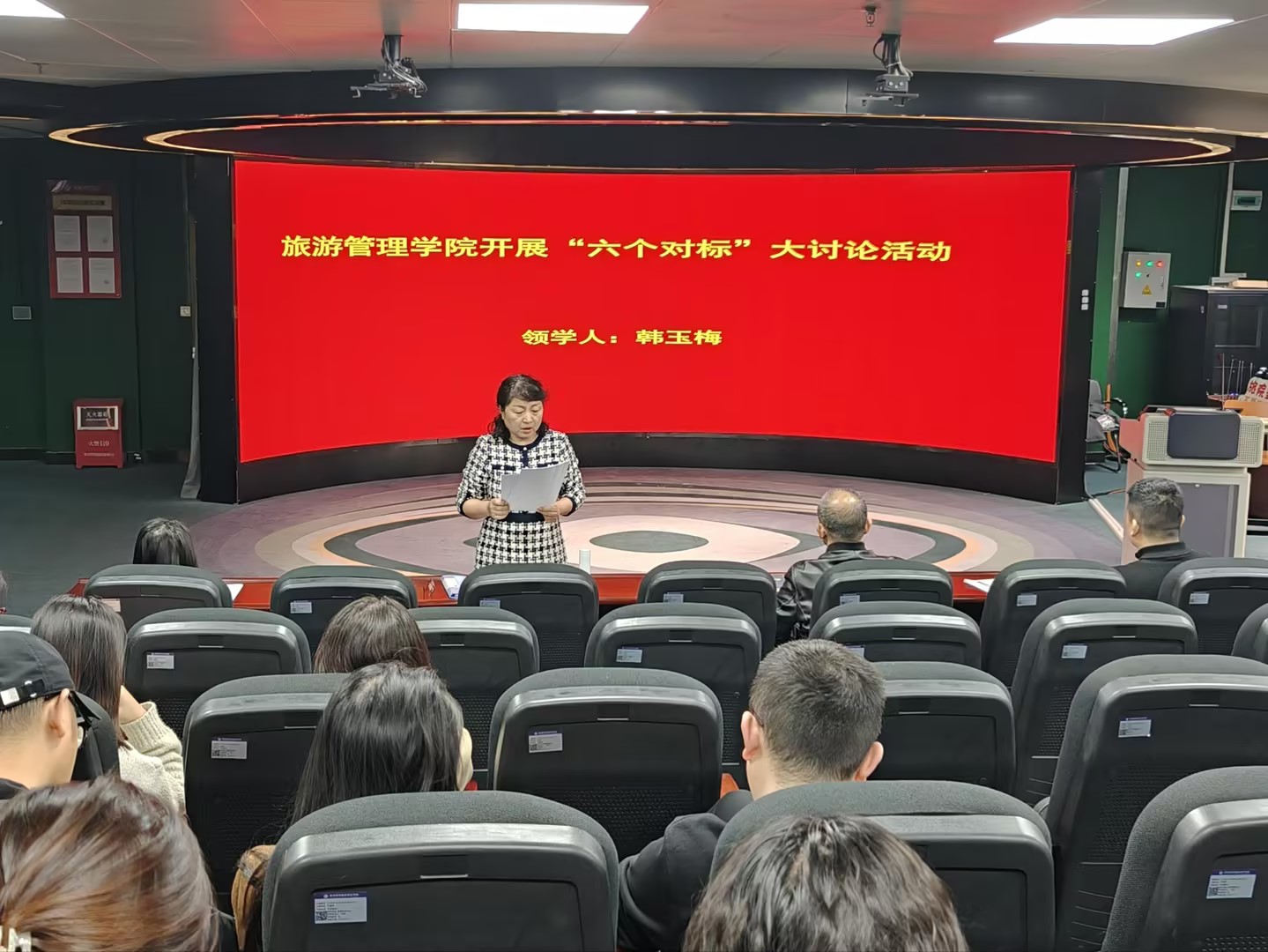 (旅游管理学院 报道)近日,旅游管理学院召开“六个对标”大讨论专题会议,紧扣学校党委扩大会暨高质量发展务虚会精神,结合学院办学实际找差距、谋思路、定举措,旅游管理学院全体教职工参会。