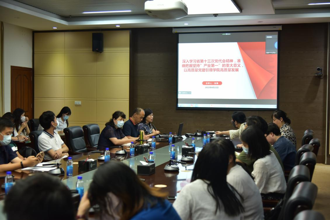 (旅游管理学院 报道)为深入学习省第十三次党代会精神,准确把握坚持“产业第一”的重大意义,以高质量党建引领学院高质量发展,6月22日,学校党委委员、组织部部长金焕作“广东省第十三次党代会公报解读”专题党课。旅游管理学院全体教师以及学生党员参加。