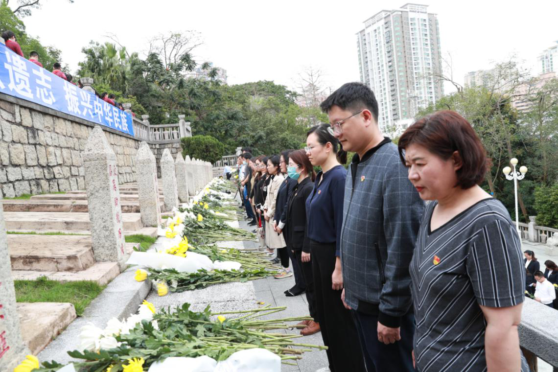 (继续教育学院党总支 报道)“苍柏映忠魂,精神永传承。”为缅怀革命英烈,弘扬革命精神,4月4日下午,继续教育学院党总支与狮山街道南香社区党委一行共30余人前往珠海烈士陵园开展“寄思明志,致敬英雄”主题党日活动。