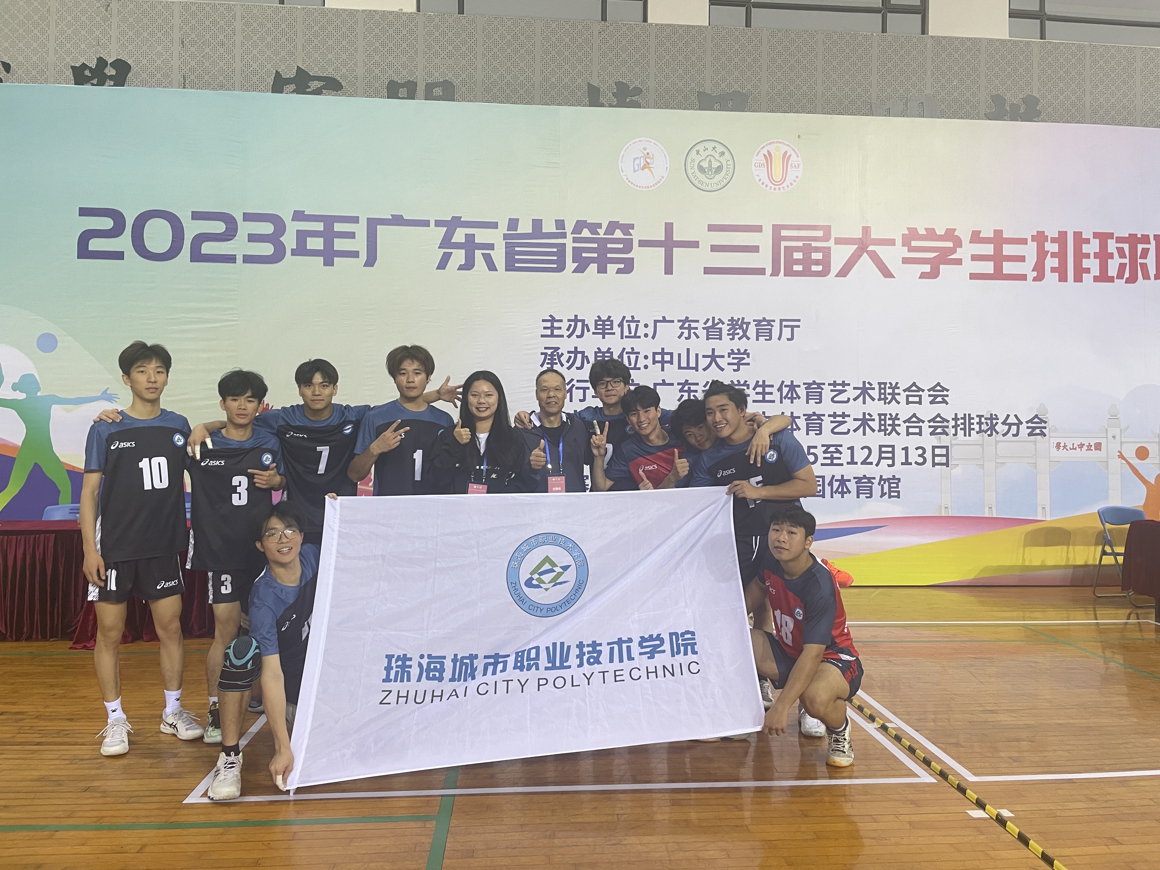 广东省第十三届大学生排球联赛于2023年12月6日至12月13日在中山大学(东校区)体育馆进行。本次比赛由广东省教育厅主办,中山大学承办,广东省学生体育艺术联合会排球分会、广东省排球协会共同协办。本次比赛在领队宣恩平、教练员宣恩平、严杰佳、吴俊凤的带领下,珠海城市职业技术学院排球队参加了男子丙B组的比赛。本次比赛中,广东省高校男女子共47支排球队齐聚一堂,面对来自各高校实力强劲的对手,珠海城市职业技术学院排球队队员们奋勇拼搏,坚持不懈,团结协作,打出了自己的气势和风采,最终获得男子丙B组第五名。这是我校在排球男子项目省赛零的突破。充分展示了我校的朝气蓬勃,积极向上的风貌。我校排球队在训练及比赛中也充分展现顽强拼搏,奋发向上,永不放弃的精神。今后,我校排球队将继续努力,再创辉煌!