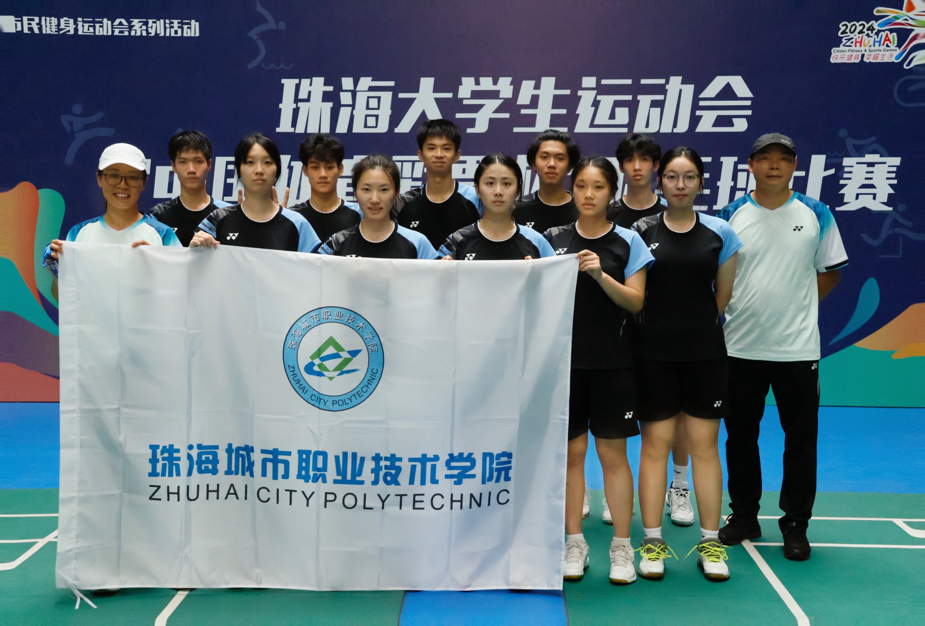 4月14日,珠海城市职业技术学院羽毛球队一行10名运动员在领队和教练员的带领下以饱满的热情、坚定的决心、良好的精神面貌亮相珠海市大学生运会。