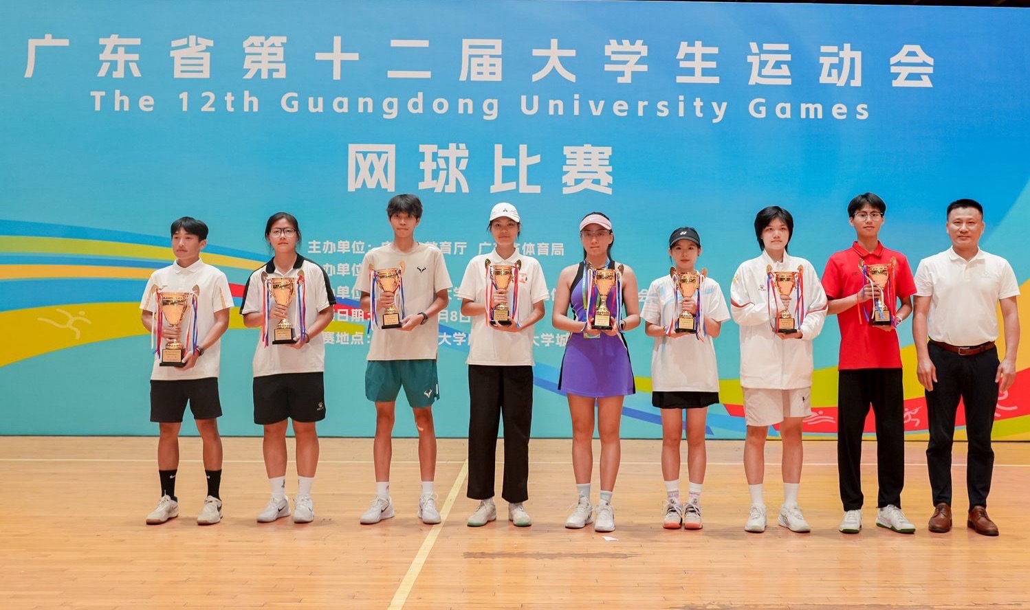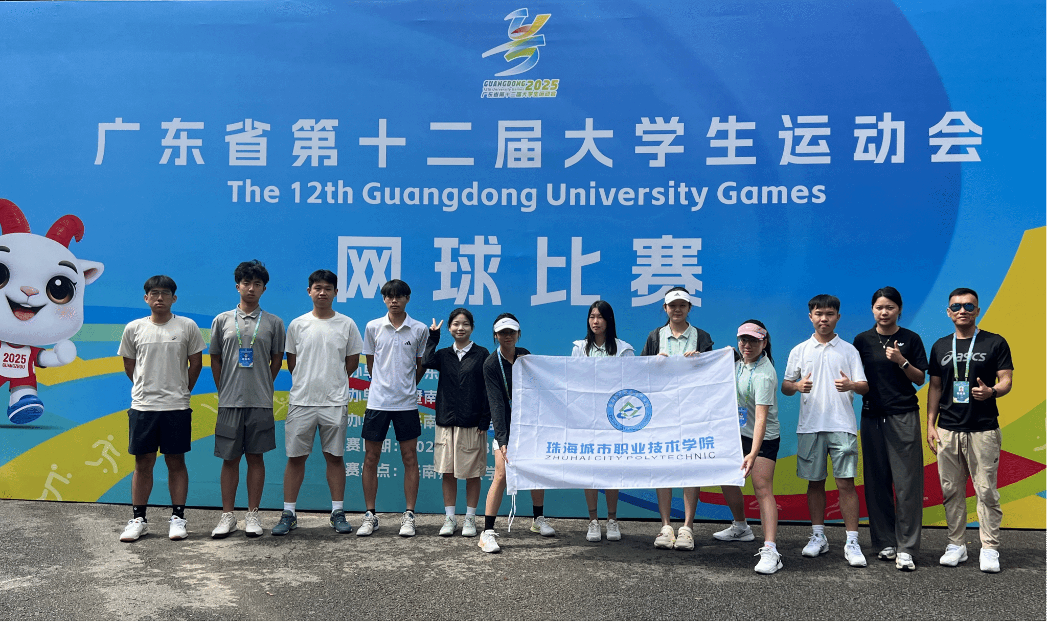 在2025年广东省第十二届大学生运动会网球比赛中,在领队梁伟东和指导老师梁国文和吴俊凤老师的带领和指导下,珠海城市职业技术学院网球队奋勇拼搏,斩获丙组团体总分第五名的优异成绩,并创下多项历史性突破。