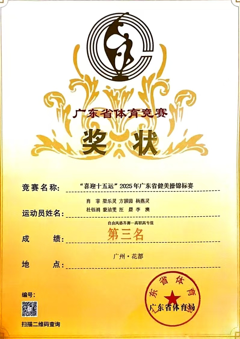 珠海城市职业技术学院在“喜迎十五运”2025年广东省健美操锦标赛中斩获佳绩!