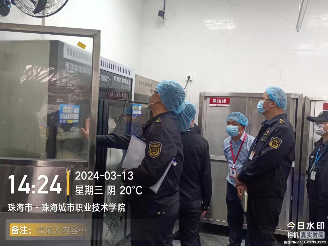 (后勤保卫处报道)2024年3月13日下午,珠海市市场监督管理局一行到我校开展春季校园食品安全专项检查。我校党委委员、副校长刘向阳及后勤保卫处相关负责人陪同检查。