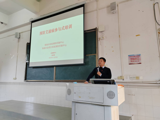 “12﹒1国际艾滋病日”来临之际,为提高师生对艾滋病的认识,进一步做好我市第五轮省级艾滋病综合防治示范区建设工作,持续推进艾滋病防治宣传教育“进校园”,珠海市疾控中心讲师团成员杨荣臻讲师于11月29日下午进入我校开展艾滋病防治健康教育专题讲座,金湾区疾控中心与我校共同组织此次讲座,200余名学生参加讲座。
