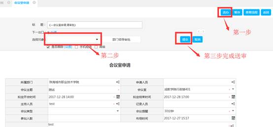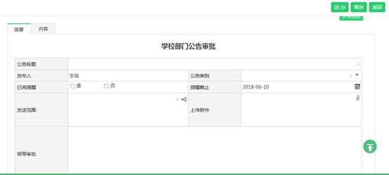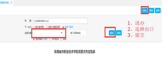 填写如下图所示的表单内容后,送办部门领导审批环节。