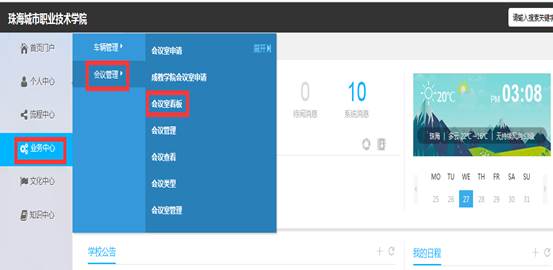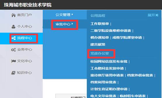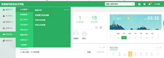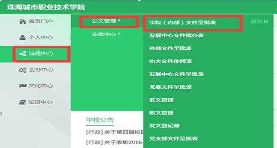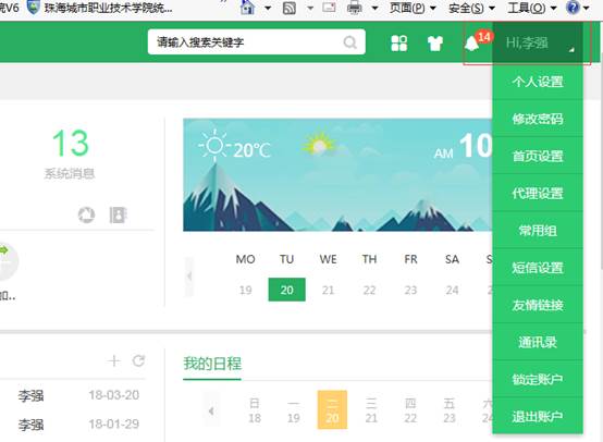 通过 IE 浏览器输入(http://oa.zhcpt.edu.cn)或者从学校官网上的链接进入。