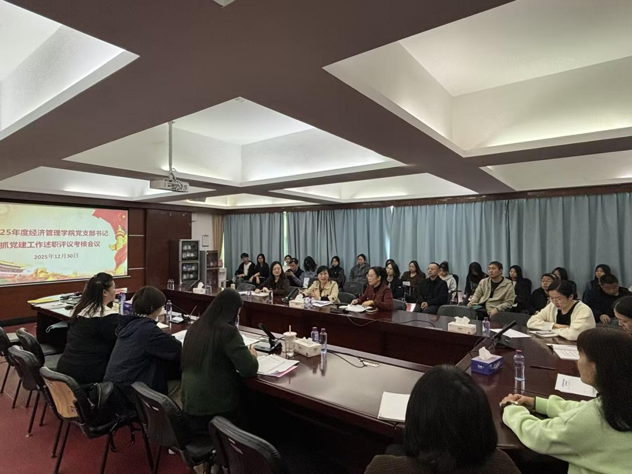 (经济管理学院 报道)12月30日上午,经济管理学院党总支召开2025年度党支部书记抓党建工作述职评议考核会议。学校党委委员、副校长金焕到会指导。学院党总支全体党员参加会议。会上,教师第一党支部、教师第二党支部、学生党支部书记围绕年度党建责任制落实,重点围绕学习贯彻党的二十届四中全会精神、全国教育大会精神,落实省委“1310”具体部署和市委“1313”思路举措的情况,系统总结工作成效与亮点,查摆存在问题,并提出下一步改进措施。...