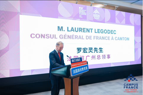 交流活动现场,法国驻广州总领事罗宏灵先生到场致辞并为2025大学生环保主题创作大赛获奖选手颁奖,3所公立大学、4所工程师学院、7所艺术类学院、17所商学院、1所语言培训学校共32所高校、教育机构以及数百名师生家长参加了本次留学交流活动。