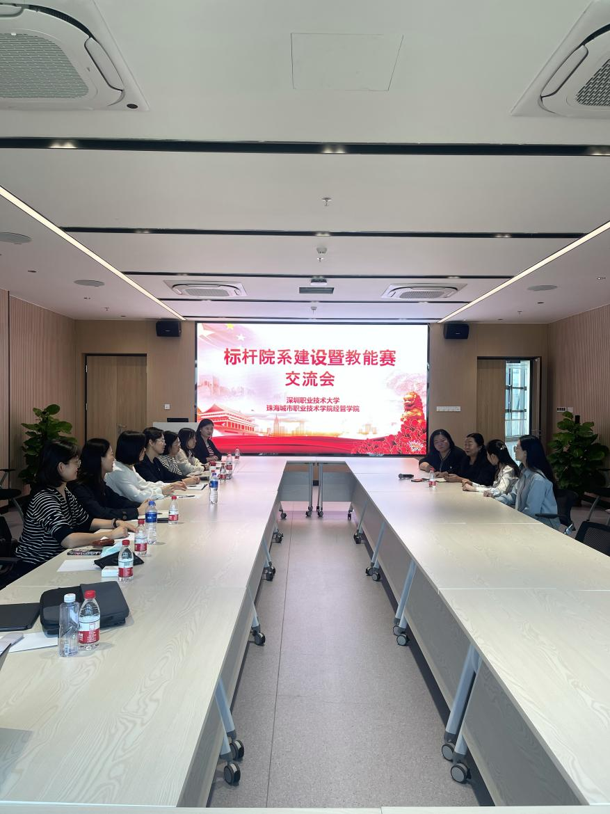 为了学习省标杆院系先进的建设经验,更好地推进教学能力备赛工作,2023年11月27日,经济管理学院党总支书记刘敏、副书记萧琳、副院长沙蓓蓓带领党总支全体委员、各专业负责人以及骨干教师一行10人前往深圳职业技术大学(以下简称深职大)开展了交流学习。