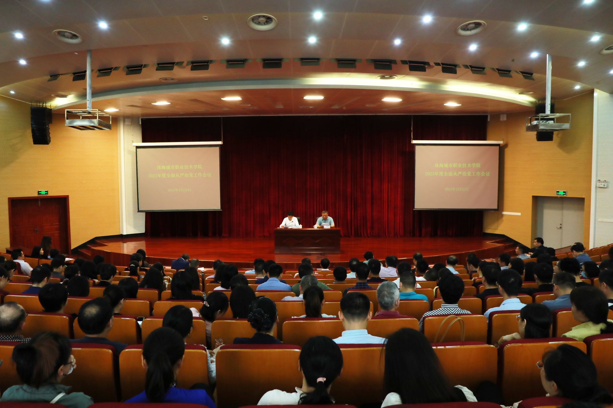 (党政办公室 报道)3月22日,我校召开2023年全面从严治党工作会议,总结2022年学校全面从严治党工作,部署2023年工作任务。校党委书记钟以俊传达上级会议精神,开展以案说纪警示教育并讲话,党委副书记、校长陈斗雪主持会议,全校在职党员参加会议。