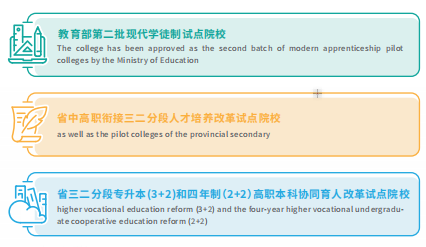 ZHCPT attaches great importance to the quality of talent training. From 2020 to 2023, students won 1 first prize, 3 second prizes and 6 third prizes in the National Vocational College Skills Competition. More than 250 prizes have been awarded in the provincial vocational college skill contests, including 56 first prizes, ranking in the forefront of vocational colleges in the province. The college has been approved as the second batch of modern apprenticeship pilot colleges by the Ministry of Education, as well as the pilot colleges of the provincial secondary and higher vocational education reform (3+2) and the four-year higher vocational undergraduate cooperative education reform (2+2).