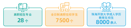 The college covers an area of about 330,000 square meters (about 500 mu) and has a construction area of 287,500 square meters. Currently there are 7 schools - School of Marxism, School of Artificial Intelligence, School of Mechanical and Electrical Engineering, School of Economic Management, School of Tourism Management, School of Humanities, and School of Continuing Education (also called Zhuhai Open University). There are about 7,500 full-time students in 28 higher-vocational enrollment majors, and about 8,000 adult education students in Zhuhai Open University. In 2021, the Municipal Party Committee and Municipal Government of Zhuhai approved the expansion of the existing full-time student scale to 10,000, and the college will strive to achieve the ‘Double Improvement’ of the existing student scale and teaching quality to cultivate more high-level technical and skilled talents for the local industrial development.
