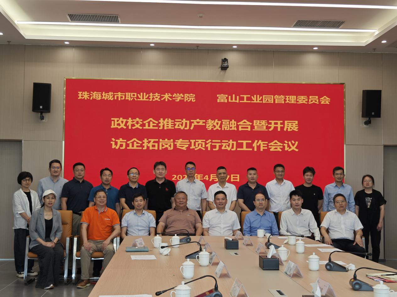 (校企合作处 报道)为充分发挥高校服务区域经济发展和粤港澳大湾区国家战略的作用,4月27日下午,我校与珠海市富山工业园管委会在富山综合服务中心召开政校企推动产教融合暨开展访企拓岗专项行动工作会议。斗门区区委常委、副区长、富山工业园管委会常务副主任杨富邦,富山工业园管委会、园区重点企业负责人,我校校长陈斗雪、副校长李军利以及学校相关职能部门、二级学院负责人出席会议。会议由富山工业园管委会副主任王旭主持。