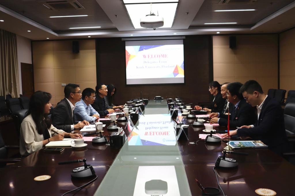 12月18日,泰王国大学事务部(教育部)前部长、现格乐大学校长Dr. Krasae Chananwongse(杨金泉)博士一行来校访问。我校刘华强校长、吴凡副校长与交流合作处相关负责人接待来访一行并座谈。