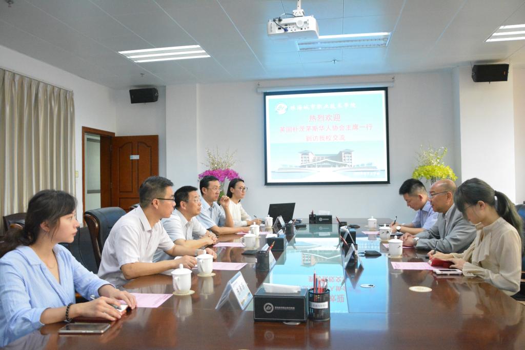 (交流合作处 报道)7月9日上午,英国朴茨茅斯市华人协会蔡润泉会长一行再次来访我校,推进两校合作。刘华强校长、吴凡副校长接待来访一行。