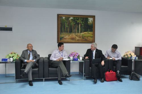 刘向阳校长首先对Rhys Williams一行的到来表示热烈欢迎。双方就续上次洽谈的合作事宜,应如何落到实处进一步深入讨论。刘向阳副校长提到,要实现中澳教育合作,应从招生、制定人才培养计划、申报教育厅这三个层面落实合作。Rhys Williams表示非常认可刘向阳副校长的观点,同时也赞成“2+1+2”培养模式,并对如何提高学生英语水平给出宝贵的建议。