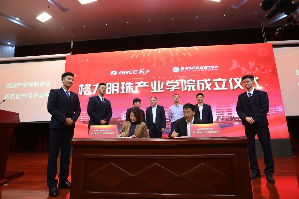 为贯彻落实习近平总书记视察广东重要讲话精神,深化产教融合、校企合作,为实体经济发展培养更多新型高素质技能型人才,服务珠海经济社会发展,格力电器股份有限公司携手我校合作共建格力明珠产业学院。