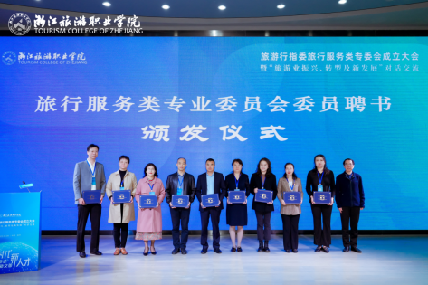 4月9日,全国旅游职业教育教学指导委员会旅行服务类专业委员会成立大会在浙江旅游职业学院进行,我院党总支书记蒋庆荣教授在成立大会上受聘为专委会委员。