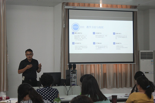 此次说课对象以本学期新进教师为主。在说专业的环节中,因外出培训而错过7月份“说专业、 说课程”的会展专业主任韩玉梅老师首先登场。她从专业设置、课程体系、人才培养模式、师资队伍建设、教学成果以及校企深度合作等多方面入手,进行专业阐述与PPT演示,全面展示了专业建设的亮点和成绩。