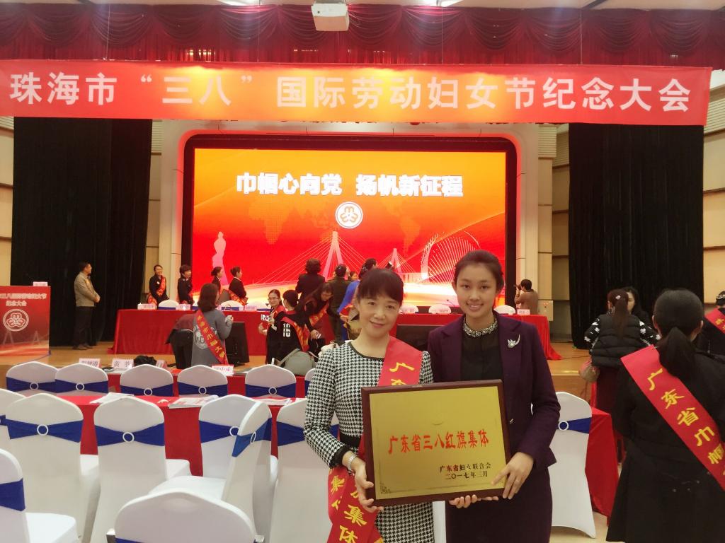 (旅游管理学院 报道)3月7日,在107个国际劳动妇女节来临之际,以“巾帼心向党、扬帆新征程”为主题的珠海市“三八”国际劳动妇女节纪念大会在青少年妇女儿童活动中心举行。大会表彰了2016年全国“三八”红旗集体1个、广东省“三八”红旗集体2个、广东省巾帼文明岗等146个先进集体及个人。旅游管理学院副院长霍巧红和青年教师朱虹作为代表参会,市政协副主席彭洪为我校旅游管理学院颁发了广东省“三八红旗集体”的荣誉牌匾。