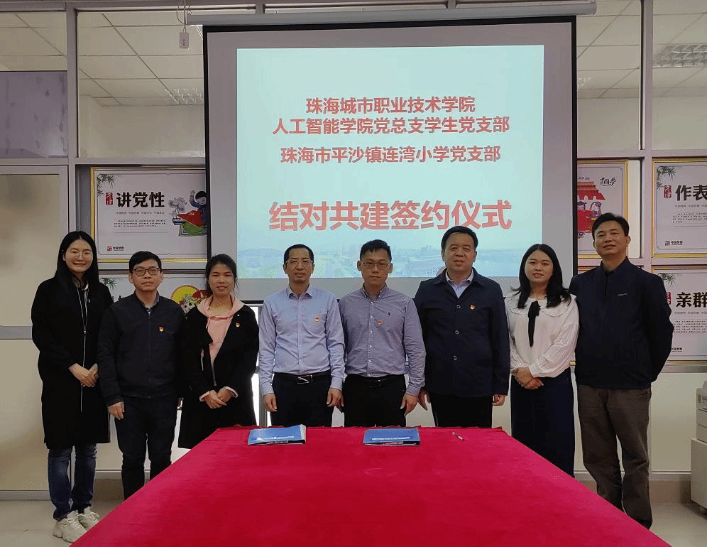 为了全面推进党组织建设,搭建共建合作平台,形成合作共赢,共谋发展党建工作新格局,2月28日上午,人工智能学院党总支学生党支部与平沙镇连湾小学党支部在人工智能学院党员活动室签订了党建共建协议书,人工智能学院党总支书记郭江平、连湾小学陈郭恒校长、创新创业教育中心副主任邱小群参加签约仪式。