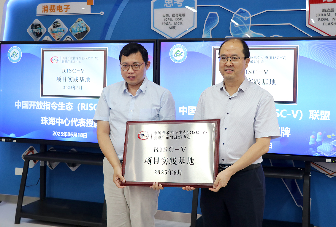 揭牌仪式现场,中国开放指令生态(RISC-V)联盟珠海中心授予学校“RISC-V项目实践基地”牌匾,南方集成电路设计服务中心、进迭时空共同授予学校“RISC-V联合实验室”牌匾,学校与如意RISC-V社区达成共建RISC-V开源教育培训基地的合作。上述合作的达成,标志着学校在RISC-V领域的多层次合作正式启动。