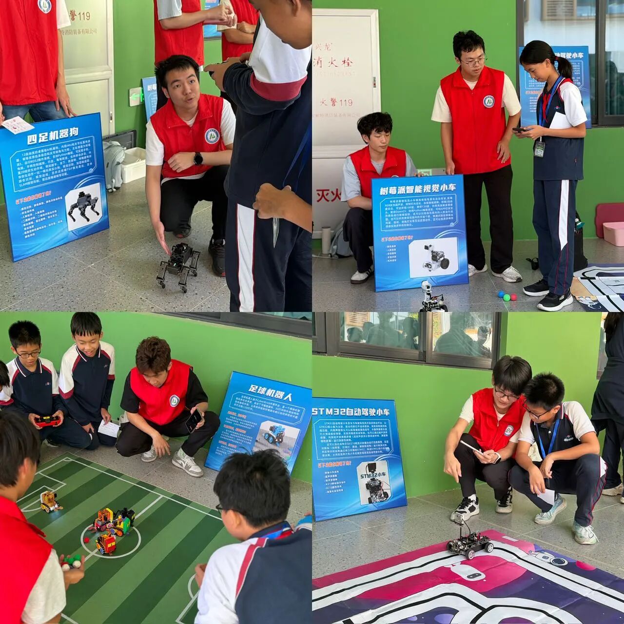 在活动开始前我们的社员针对“人工智能”的话题对青少年们进行了理论课堂教学,让青少年们对人工智能有更深刻的了解。随后设计了8个有趣的项目邀请青少年开展探索体验活动,我们有树莓派智能视觉小车、STM32自动驾驶小车、AI机器狗、小型无人机、智能视觉机械臂、智慧房屋、电子积木,还有新增的项目足球机器人,它是一个模块化智能玩具生态系统,结合了可编程硬件、3D打印的外观结构和自由编程环境。