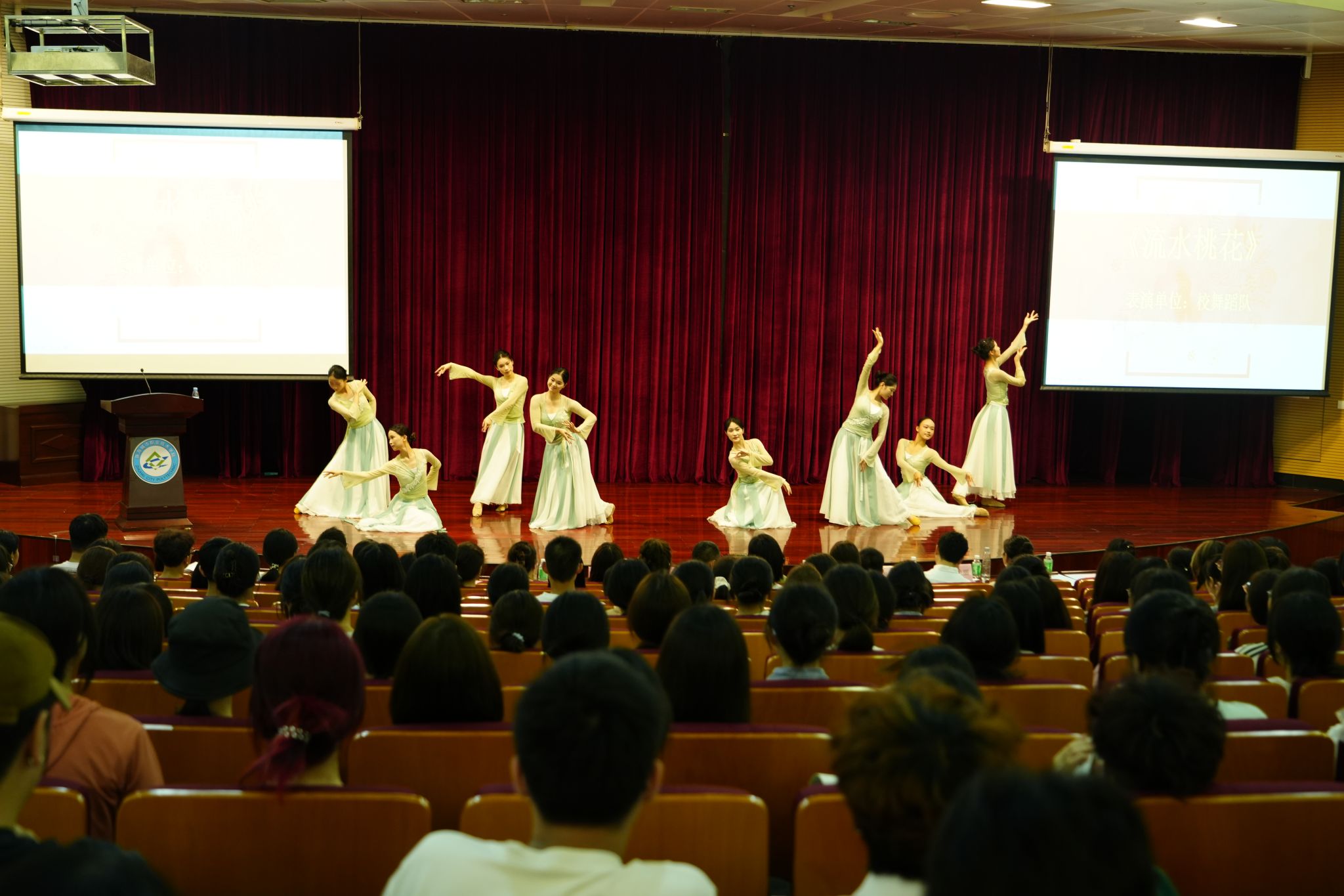 新生见面会在2023级学前教育专业学生献唱的歌曲《我的未来式》中拉开帷幕,校舞蹈队随后演绎古典舞《流水桃花》,以轻盈流畅的舞姿生动展现人文艺术的独特魅力,引来现场阵阵掌声。与会师生还共同观看了人文学院宣传片,进一步了解了人文学院师资力量和育人成果。