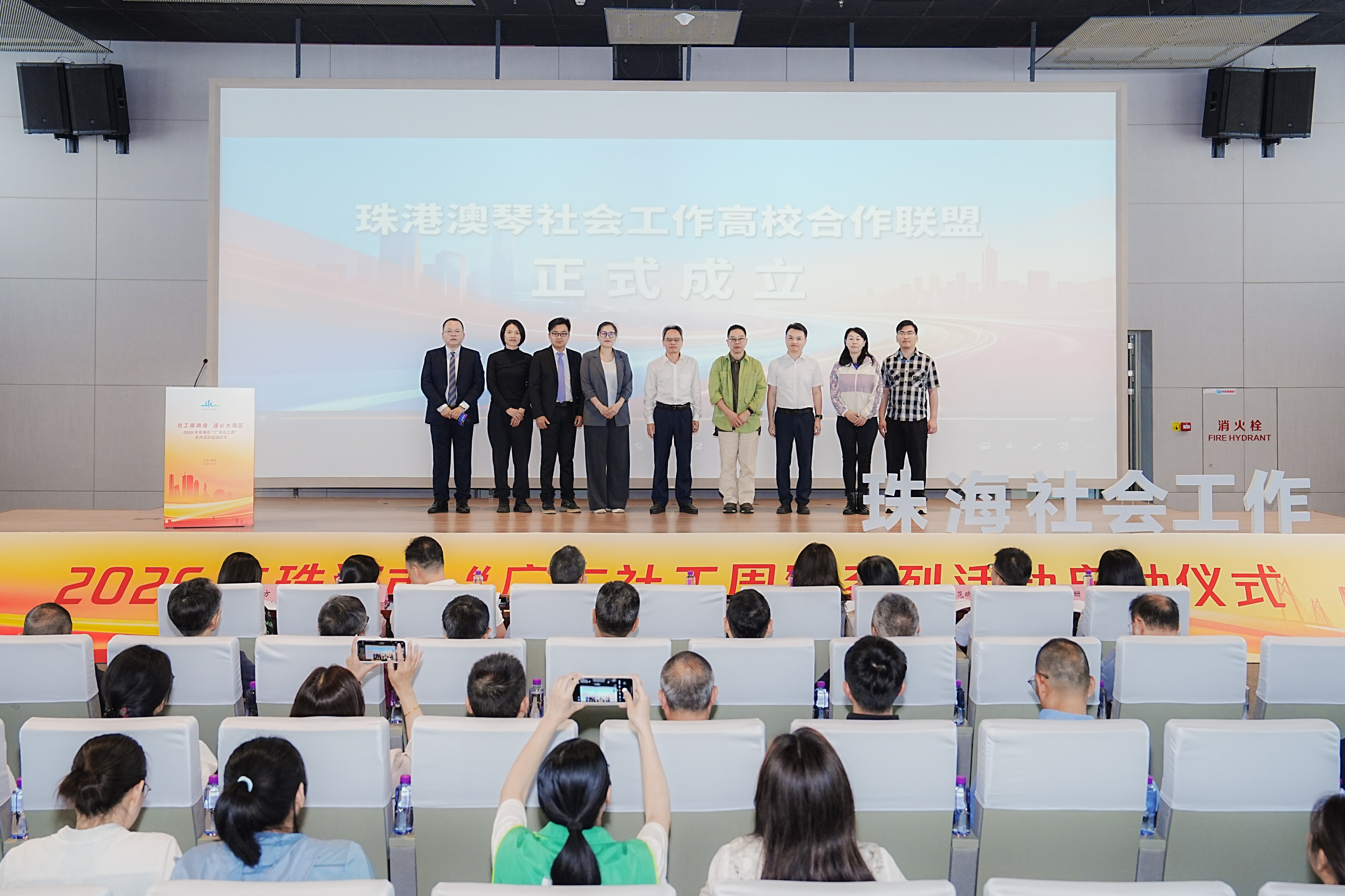 (人文学院 报道)3月26日,2026年珠海市“广东社工周”系列活动启动仪式在珠海市博物馆举行,市委社会工作部、市民政局等十几个政府部门领导出席、珠港澳高校社工学者、社工同行、社区工作者及社工学子100余人参与。我校应邀作为活动协办单位参加,人文学院党总支书记李妮、副院长何永根代表学校出席了启动仪式。
