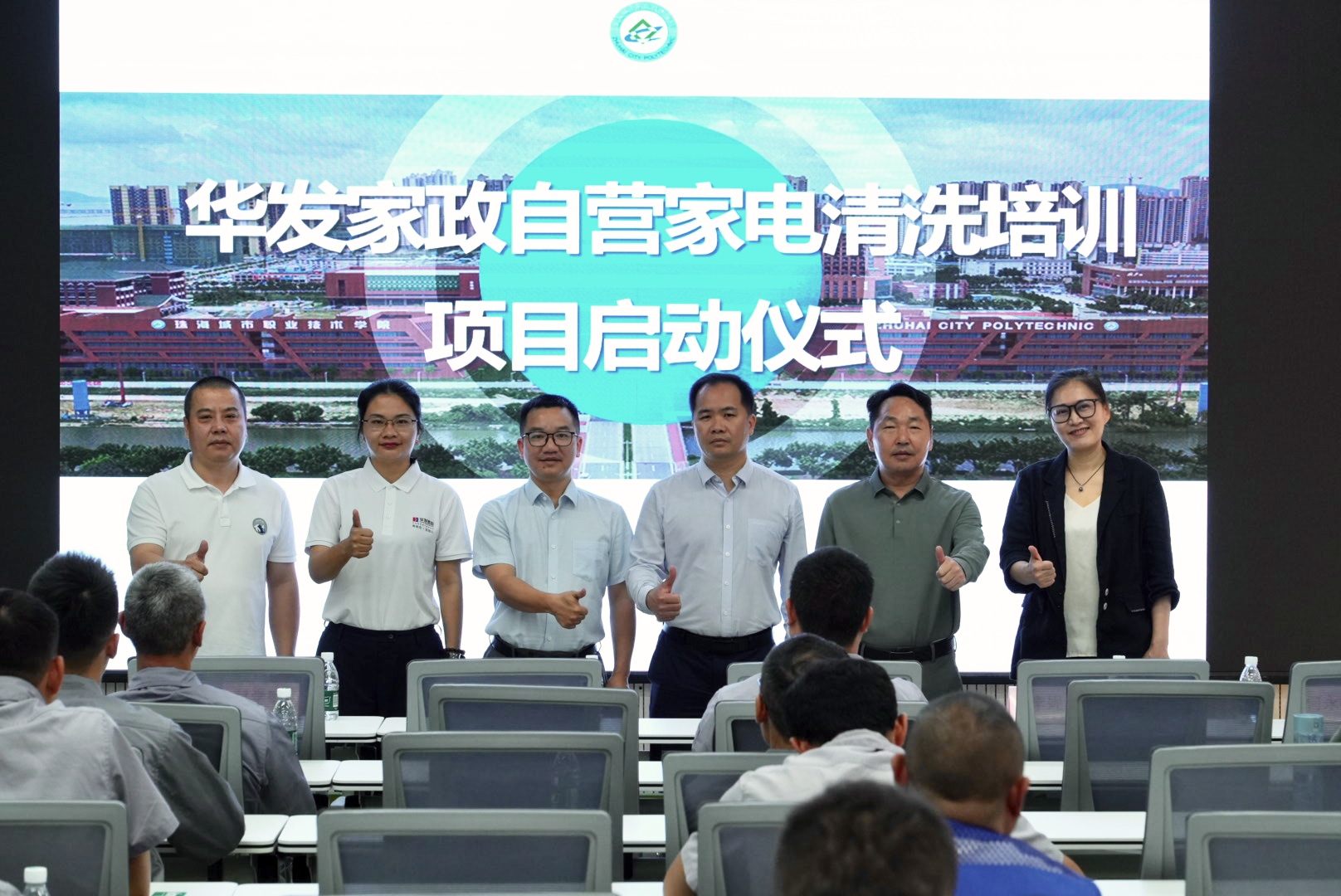 校企合作处副处长梅伯平、人文学院党总支书记李妮、人文学院副院长何永根、珠海华发家政公司副总经理谢冠球、服务总监付学敏出席了开班仪式。梅伯平代表学校致辞,对本次校企合作专项培训项目的启动表示热烈祝贺,并希望双方以本次培训为契机,开启深度产教融合的新篇章,期待彼此在更多领域有更多的合作产出和成效输出。珠海华发家政副总经理谢冠球对我校的大力支持表示衷心感谢,他阐述了当前家政行业对专业空调清洁技能人才的市场需求,介绍了华发家政在服务标准化、技能人才培养方面的规划与布局。他表示,本次专项培训课程紧扣行业实操需求,由高职院校、企业讲师组建团队并且全程授课,希望通过校企合作的模式,让参训学员系统掌握空调清洁专业技能,提升职业素养,为家政行业高质量发展注入专业力量,同时期待与学校建立长期稳定的合作关系,共同打造家政技能人才培养的优质样板。