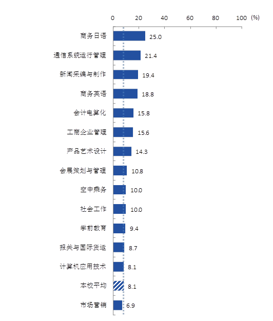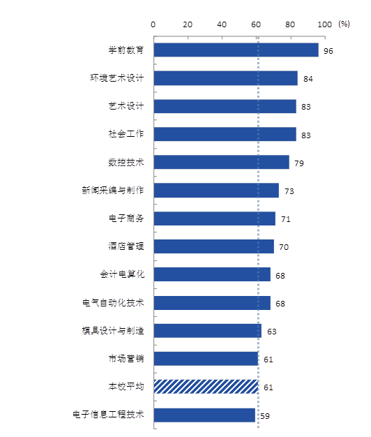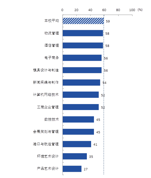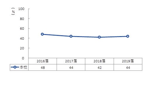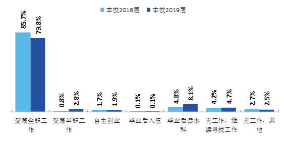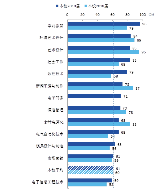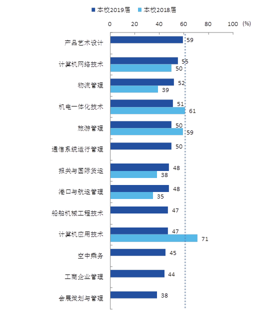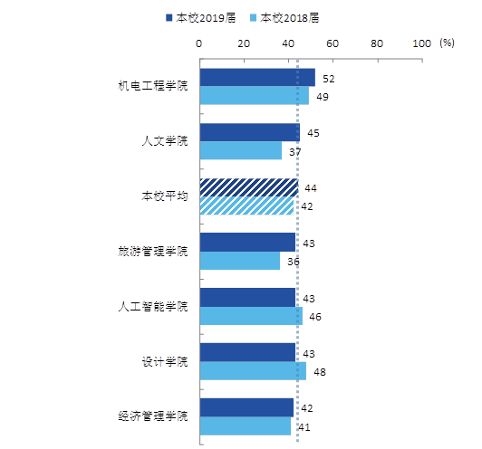 本校2019届毕业生的离职率为44%,比2018届(42%)高2个百分点,与本校2017届(44%)持平。