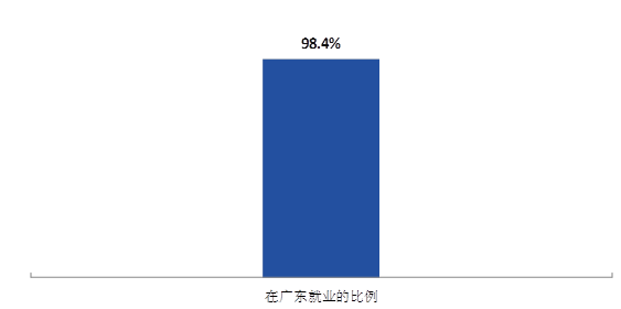 本校2016届~2019届就业的毕业生在广东就业的比例(分别为98.5%、97.6%、97.0%、98.4%)基本持稳,2019届毕业生就业量较大的城市为珠海(62.3%)。