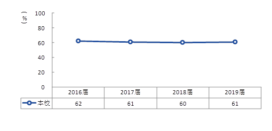 本校2019届毕业生的工作与专业相关度为61%,与2018届(60%)基本持平,本校近四届毕业生的工作与专业相关度整体基本持平。