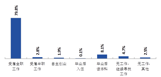 毕业生的就业基本情况反映了毕业生毕业后的基本去向。本章主要从毕业生的就业率及去向、职业和行业流向、毕业生升学和自主创业情况来展现本校毕业生就业的基本情况。