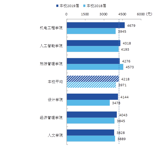根据毕业生半年后的跟踪调查结果显示,与本校2018届相比,本校2019届月收入上升较多的学院是机电工程学院(4679元)、设计学院(4144元)、经济管理学院(4043元)、人工智能学院(4318元)。